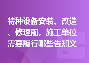 (1)特种设备安装、改造、修理的施工单位应当在施工前将拟进行的特种设备安装、改造、修理情况书面告知直辖市或者设区的市级人民政府负责特种设备安全监督管理的部门。